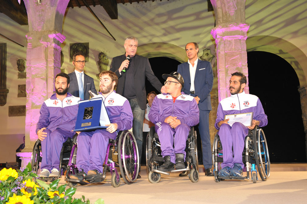 Ore 21. I riflettori sono puntati sulla Piazza del Municipio a Castiglion Fiorentino (Arezzo). Una piazza gremita, malgrado la pioggia, di persone e di campioni. A celebrare i successi, non solo sportivi ma anche il comportamento etico dei premiati, è il conduttore Michele Criscitiello, direttore di Sportitalia, che in diretta ha trasmesso l’evento.