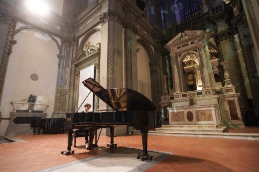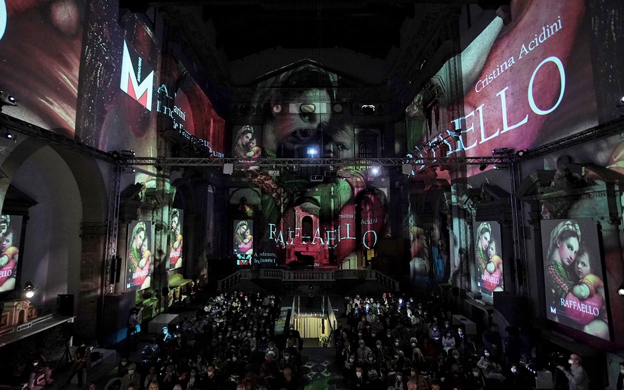 La chiesa di Santo Stefano al Ponte ha accolto il pubblico con un allestimento speciale ispirato all’illustre urbinate. Suggestive videoproiezioni e le note del pianista Sebastian Emilio Suvini hanno accompagnato il viaggio dei presenti alla