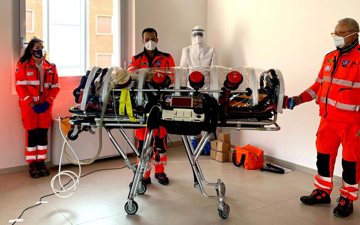 L’associazione di volontariato Humanitas di Firenze che si occupa di servizi di emergenza h24, ha ricevuto in dotazione dal Gruppo Menarini una barella per il trasporto dei pazienti in biocontenimento. Si tratta di un aiuto concreto per i sanitari impegnati ogni giorno nella lotta contro il Coronavirus. La biobarella, infatti, consente lo spostamento in ambulanza di un contagiato ad alto tasso infettivo. Come ha spiegato Maurizio Burgassi, Presidente di Humanitas: “quello della biobarella è un ambiente particolarmente garantito, perché attraverso un meccanismo di filtraggio dell’aria si impedisce al virus di uscire fuori dal bio contenimento. Questa peculiarità assicura la salvaguardia dei soggetti esterni alla barella che così non vengono contaminati.”