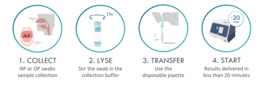Il nuovo test si esegue tramite un tampone nasale o orofaringeo, il campione prelevato viene poi inserito in un flaconcino e agitato. In seguito, un’aliquota viene trasferita in un secondo flaconcino – contenente i reagenti per effettuare la PCR (reazione a catena della polimerasi) – che viene quindi inserito all’interno della piattaforma VitaPCR™ per avviare il processo di analisi. Il risultato appare sullo schermo dello strumento dopo soli 20 minuti e permette non solo di rilevare l’eventuale positività al Covid-19, ma anche di identificare l’influenza A o B con un’attendibilità pari a quella di un test molecolare.