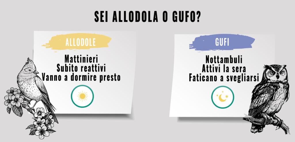 L’intensità del jet lag dipende anche dal numero di fusi orari attraversati, ma, a parità di essi, è una condizione influenzata da diverse caratteristiche individuali come l’età, la durata media del sonno notturno e il cronotipo, che indica la predisposizione di una persona ad essere serale (“gufo”) o mattiniera (“allodola”).