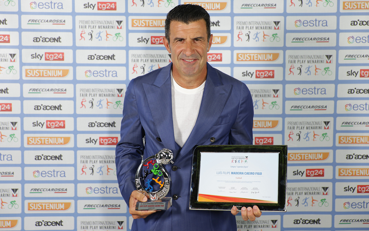 Non è stato solo un fuoriclasse del dribbling e dell’assist, ma un atleta misurato, capace di coniugare lo spirito competitivo del campione e la correttezza dell’uomo di sport cresciuto con sani principi. Questo equilibrio tra agonismo e rispetto, tra ambizione e sobrietà, è stato riconosciuto pubblicamente il 3 luglio 2025, quando Figo ha ricevuto il prestigioso Premio Internazionale Fair Play Menarini (categoria “Personaggio Mito”), nella suggestiva cornice del Teatro Romano di Fiesole. Un premio che non celebra solo i gesti tecnici, ma anche quelli morali, che Figo ha incarnato lungo tutta la sua carriera, dalle giovanili nei piccoli club portoghesi fino al ritiro.