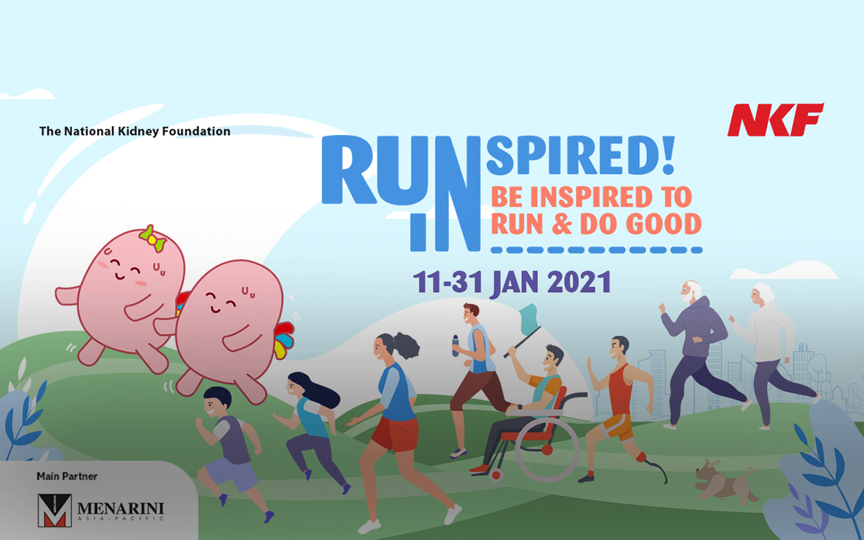 Per diffondere la consapevolezza e sostenere la salute dei reni a livello nazionale, la NKF di Singapore ha organizzato il RunInspired! 2021, un evento inaugurale di beneficenza virtuale che ha avuto luogo dall’11 al 31 gennaio 2021. È questa la prima corsa “virtuale” della NKF, in cui i partecipanti possono correre secondo il proprio ritmo, avendo a disposizione quattro categorie di gara tra cui scegliere: 5 km, 10 km, 21 km e 55 km. La distanza di gara è cumulativa sui 21 giorni.