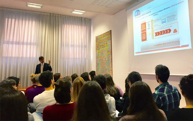 In un’aula gremita, tantissimi giovani hanno avuto l’opportunità di ascoltare gli interventi del direttore delle Risorse Umane del Gruppo Menarini, Massimo Galeazzi e della responsabile della Selezione e Sviluppo Menarini, Lia Granato e soprattutto le testimonianze di Jacopo e Camilla, due ex studenti dell’Università di Firenze che da qualche anno lavorano come manager negli Affari Regolatori in Menarini Ricerche e come medical advisor di Menarini Internazionale.